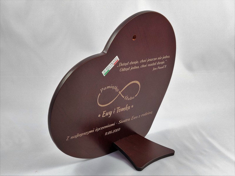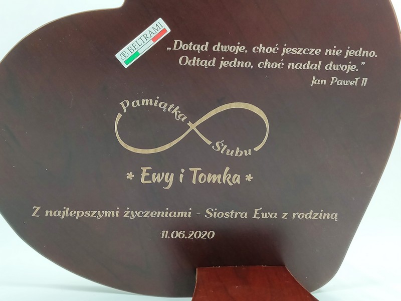 Obrazek ma wygrawerowaną pamiątkową dedykację z okazji Ślubu.