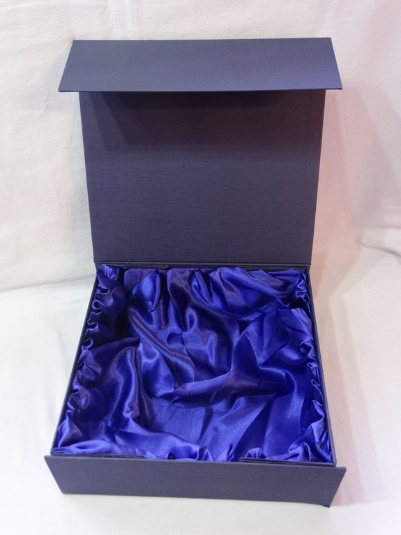 Do statuetki można dodatkowo zamówić składane etui kartonowe, wyściełane materiałem, w kolorze niebieskim.