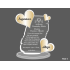 Pamiatka Ślubu w postaci statuetki z pleksy w kształcie rozwiniętego rulonu z dołączonymi sercami.