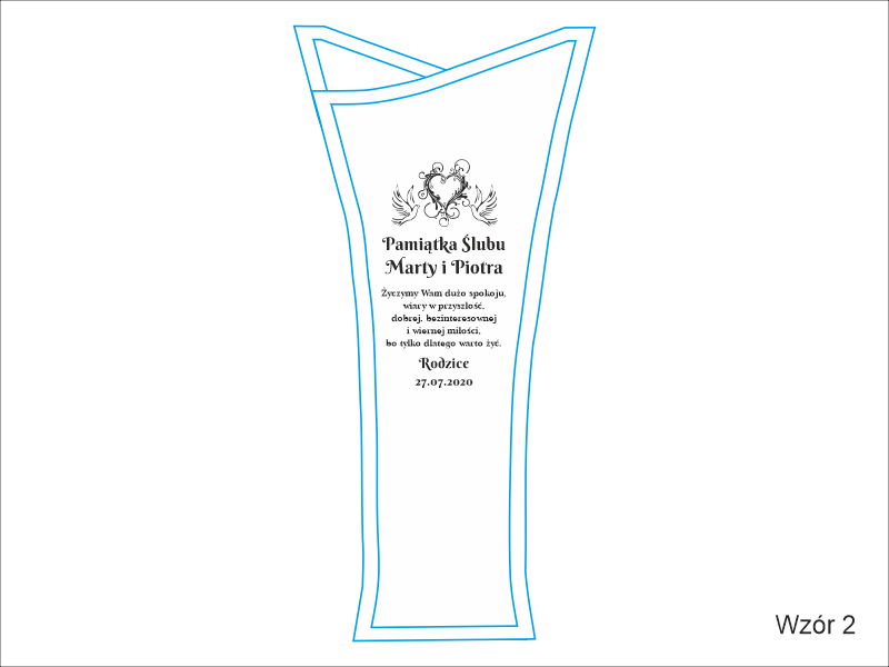 Pamiątkowy grawer na pamiątkę ślubu można także wykonać na innych modelach wazonów.