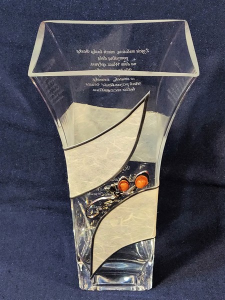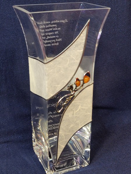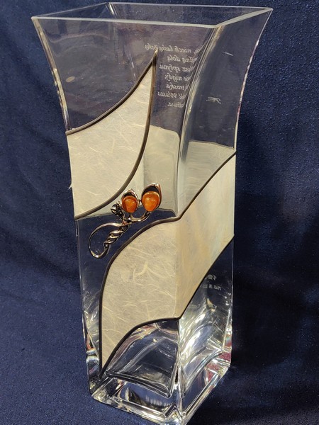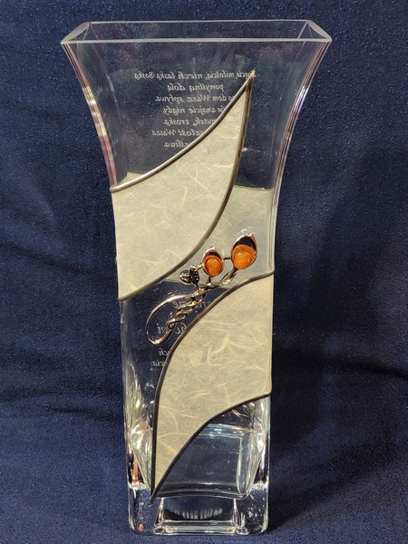 Intrygująca forma i zdobienie wazonu w połączeniu z dedykowanym pamiątkowym grawerem wzbudzi zachwyt i niepowtarzalne emocje obdarowanych.