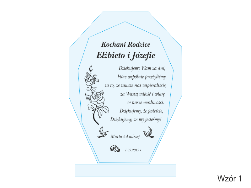 Istnieje możliwość graweru dedykacji wg indywidualnych ustaleń i projektu lub wg jednego ze wzorów.