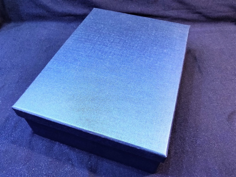 Szkło pakowane jest w ozdobne, kartonowe, wyściełane materiałem, niebieskie etui.