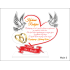Po bokach serca umieszczone są wykonane z laminatu - wycięte i grawerowane srebrne gołąbki.