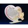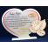 Podziękowanie dla Rodziców ma formę statuetki z pleksy i laminatu. Statuetka ma kształt serca z dołączoną z boku różą.