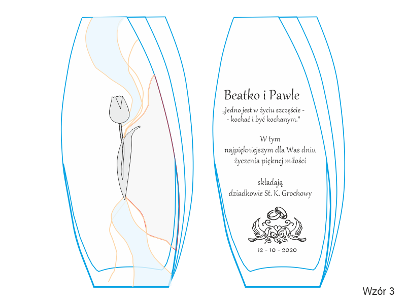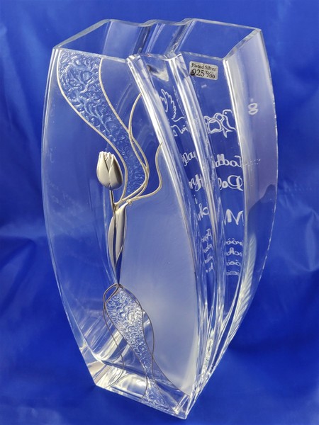 Pamiątkowy grawer z okazji ślubu można także wykonać na innych modelach wazonów.