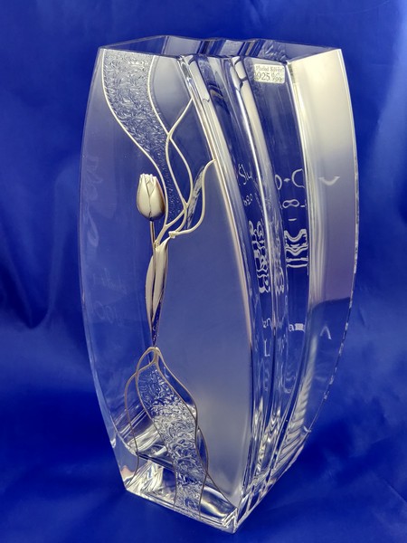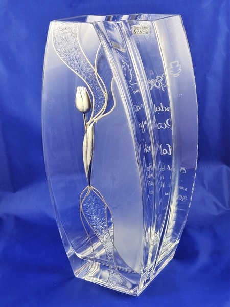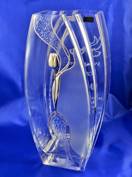 Intrygująca forma i zdobienie wazonu w połączeniu z pamiątkowym grawerem wzbudzi zachwyt i emocje obdarowanych.