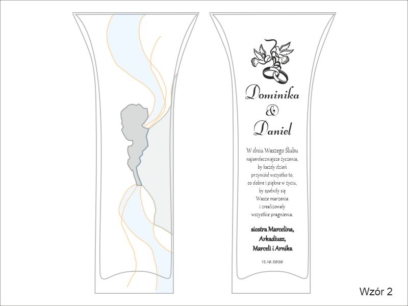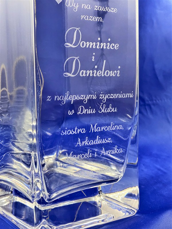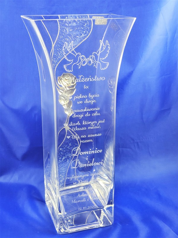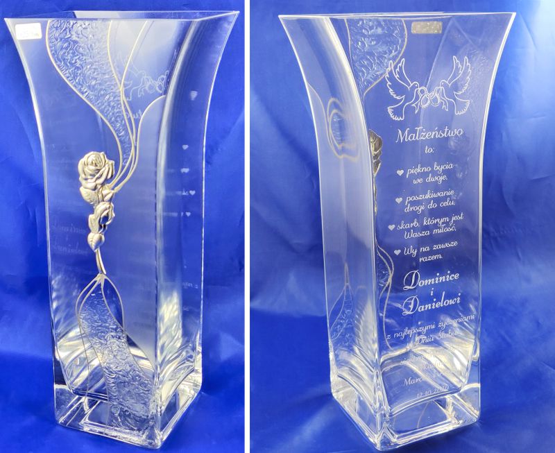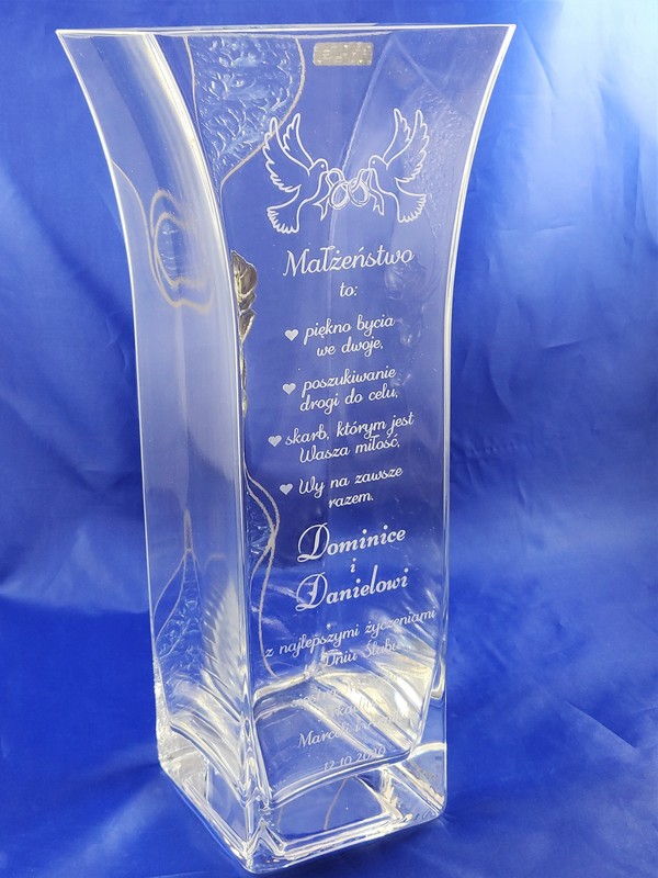 Pamiątkowy grawer z okazji ślubu można także wykonać na innych modelach wazonów.