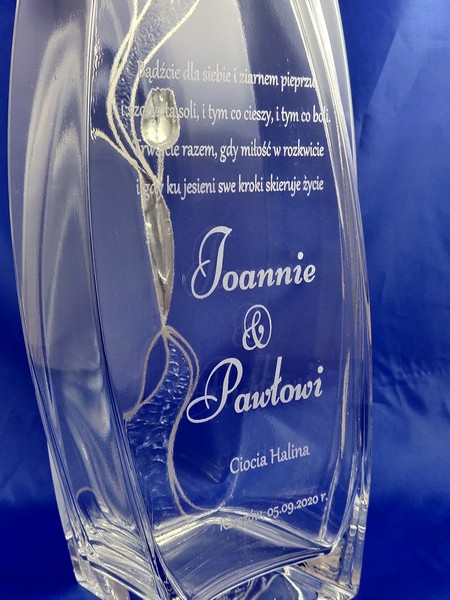 Pamiątkowy grawer z okazji ślubu można także wykonać na innych modelach wazonów.