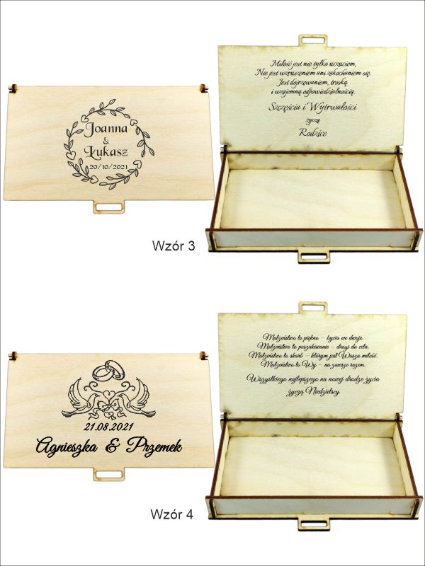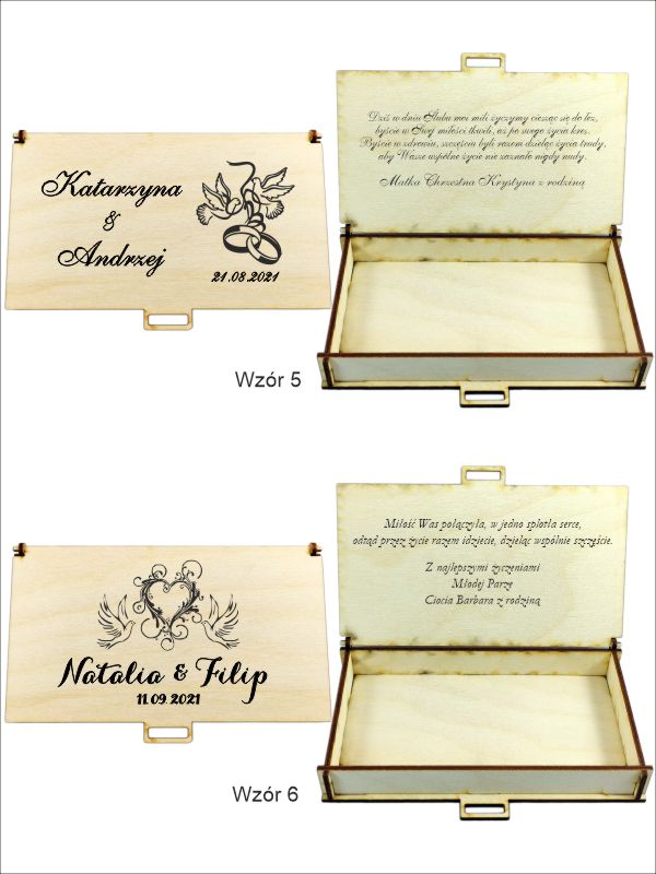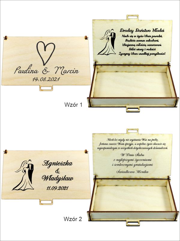 W szczególności w grawerunku zmienia się imiona, datę, treść życzeń czy informację od kogo jest pudełko