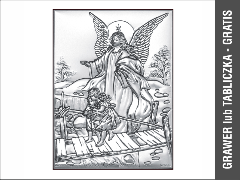 Srebrny Obrazek "Anioł Stróż z dziećmi na kładce 6349 prostokątny".
