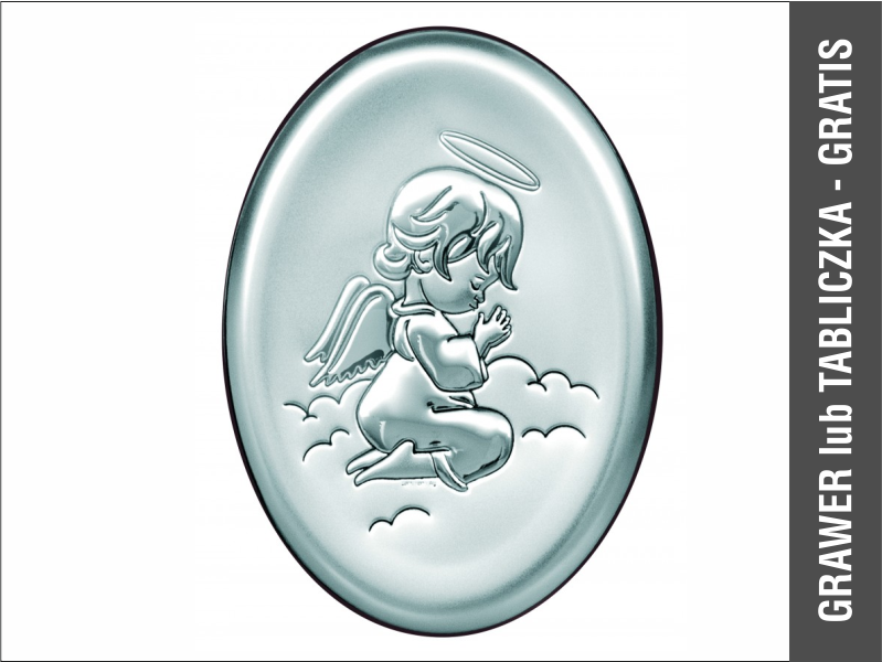 Srebrny Obrazek "Aniołek klęczący na chmurce 6384 owalny".