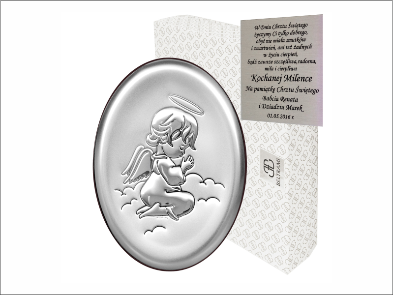 Na srebrnym obrazku możemy wykonać indywidualny grawer dedykacji.