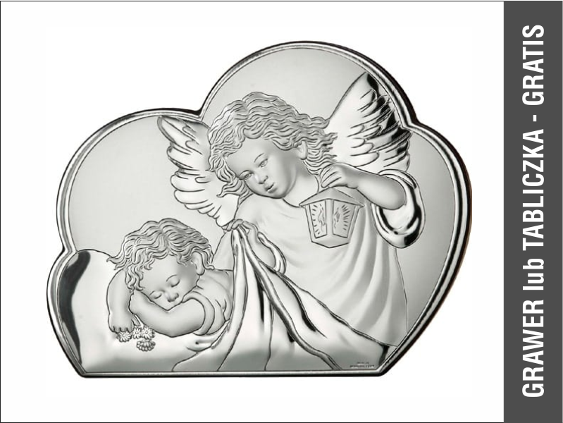 - obrazek srebrny przedstawiający Aniołka z latarenką