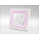 Srebrny Obrazek "Aniołek z latarenką nad dzieckiem na różowym materiale z białą drewnianą ramką 75020/RA".