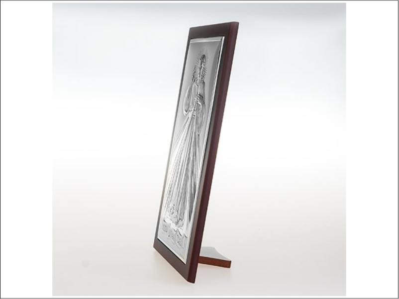 Srebrny Obrazek "Jezu Ufam Tobie 6443WM" na drewnianej ramce.