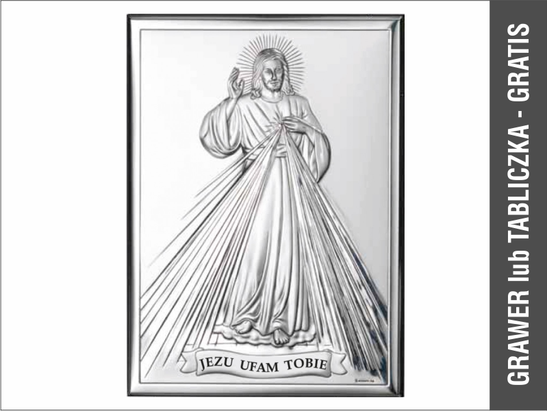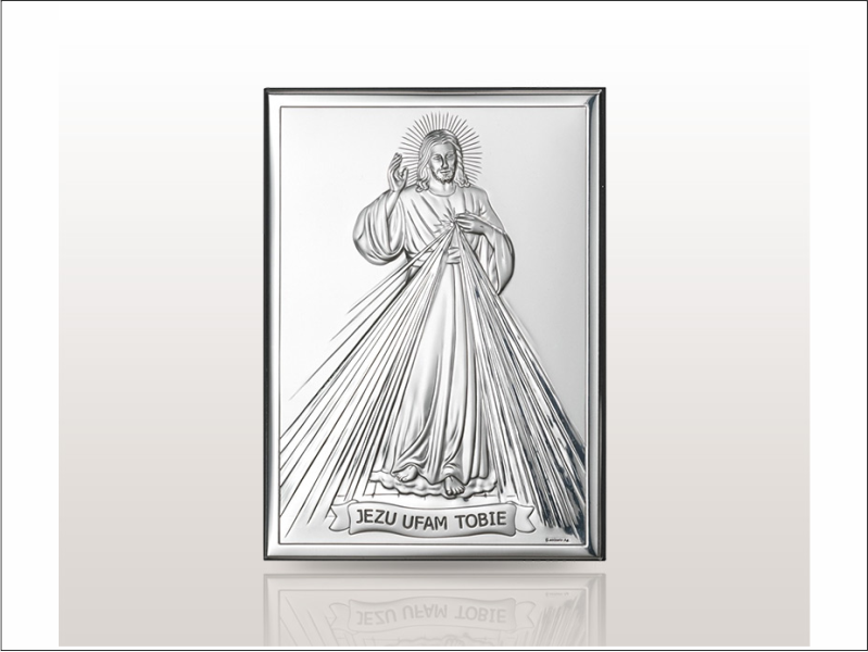 - obrazek srebrny przedstawiający wizerunek Jezu Ufam Tobie