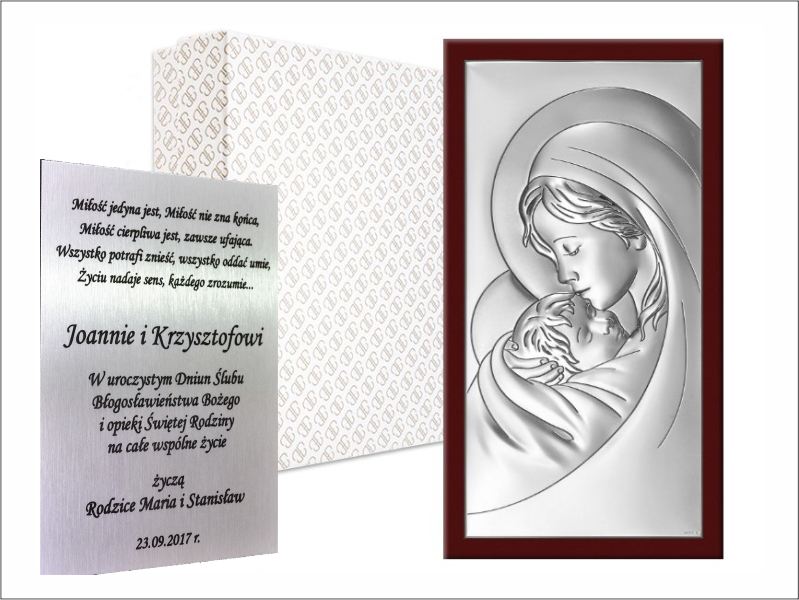 Na srebrnym obrazku możemy wykonać indywidualny grawer dedykacji.