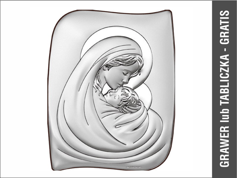 - obrazek srebrny przedstawiający wizerunek Maryi z dzieciątkiem