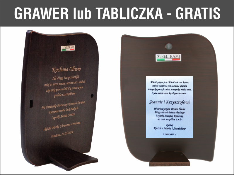- z możliwością indywidualnego graweru lub tabliczki z grawerem GRATIS