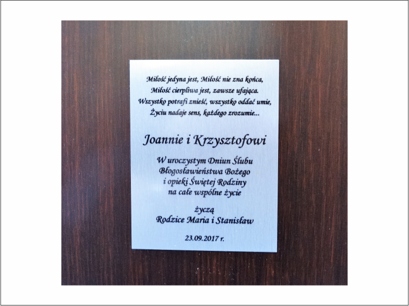 Na srebrnym obrazku możemy wykonać indywidualny grawer dedykacji.