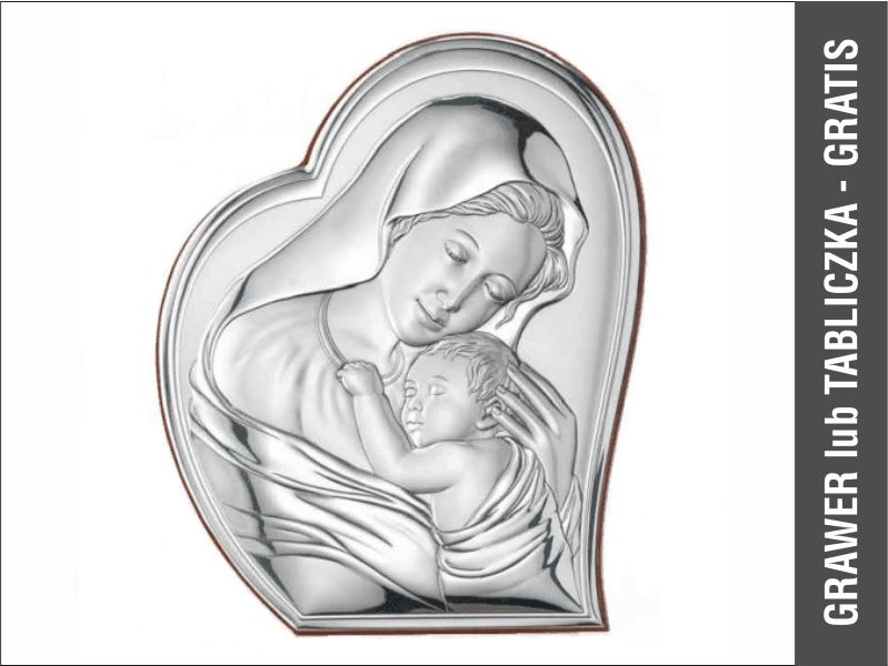 - obrazek srebrny przedstawiający wizerunek Maryi z dzieciątkiem