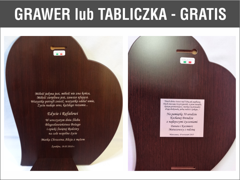 - z możliwością indywidualnego graweru lub tabliczki z grawerem GRATIS