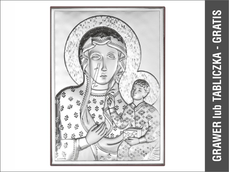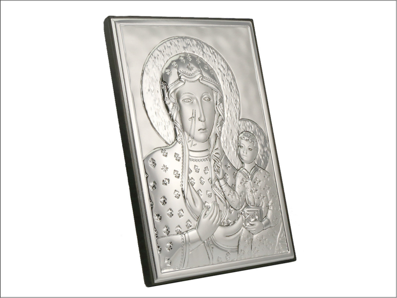 - obrazek srebrny przedstawiający wizerunek Matki Bożej Częstochowskiej