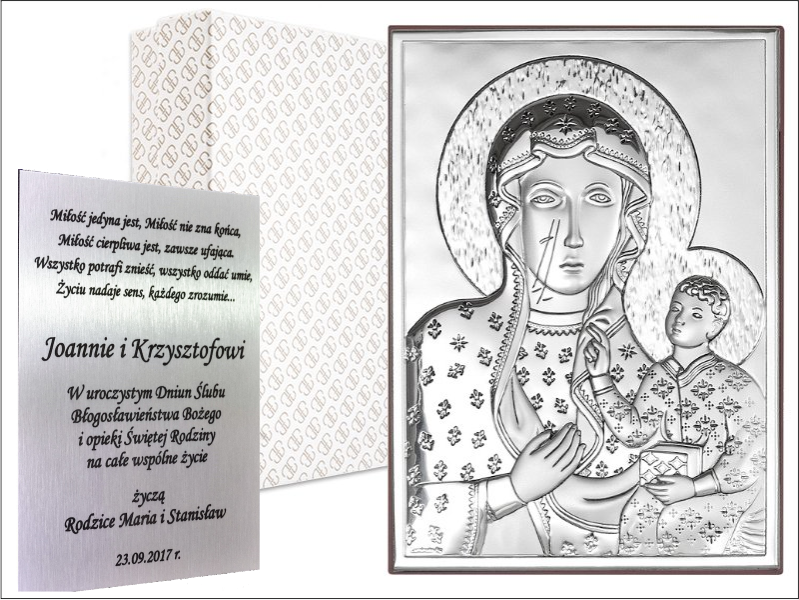 Na srebrnym obrazku możemy wykonać indywidualny grawer dedykacji.