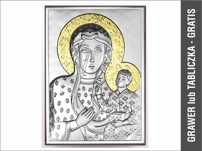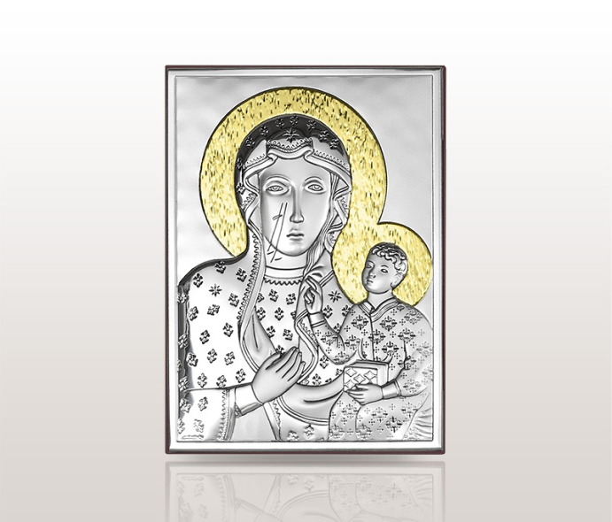 Srebrny Obrazek "Matka Boża Częstochowska 6323ORO" ze złoceniami.