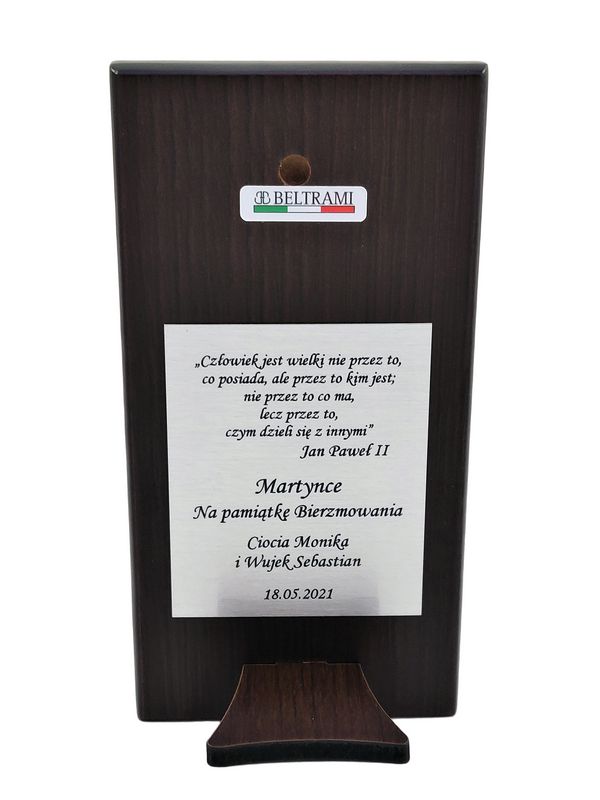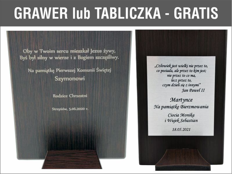 Grawer dedykacji wykonany jest bezpośrednio w drewnie lub na stolej tabliczce.