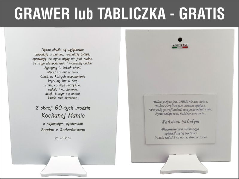 Grawer wykonany jest bezpośrednio w drewnie lub na osobnej dołączonej tabliczce.
