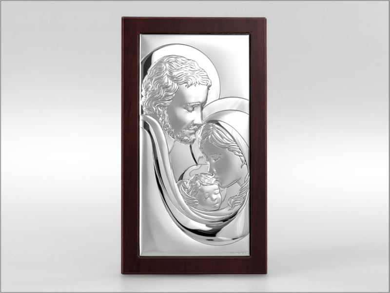Srebrny Obrazek "Święta Rodzina 6650WM" na drewnianej ramce.