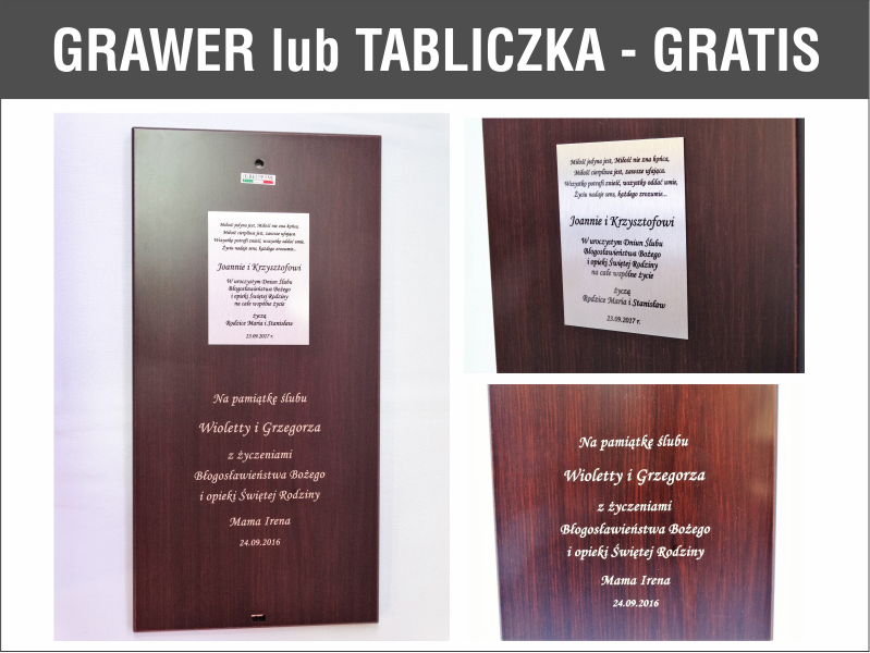 - z możliwością indywidualnego graweru bezpośrednio w drewnie lub tabliczki z grawerem GRATIS
