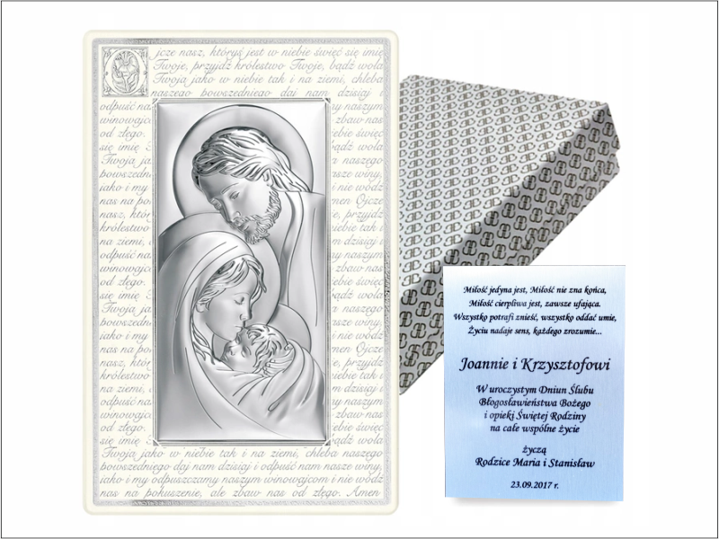 - obrazek srebrny przedstawiający wizerunek Świętej Rodziny