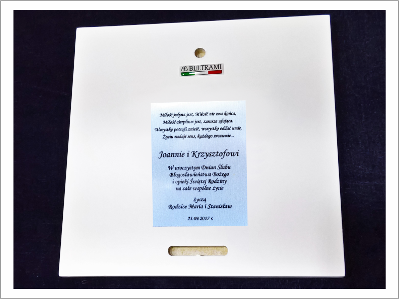 Na srebrnym obrazku możemy wykonać indywidualny grawer dedykacji.