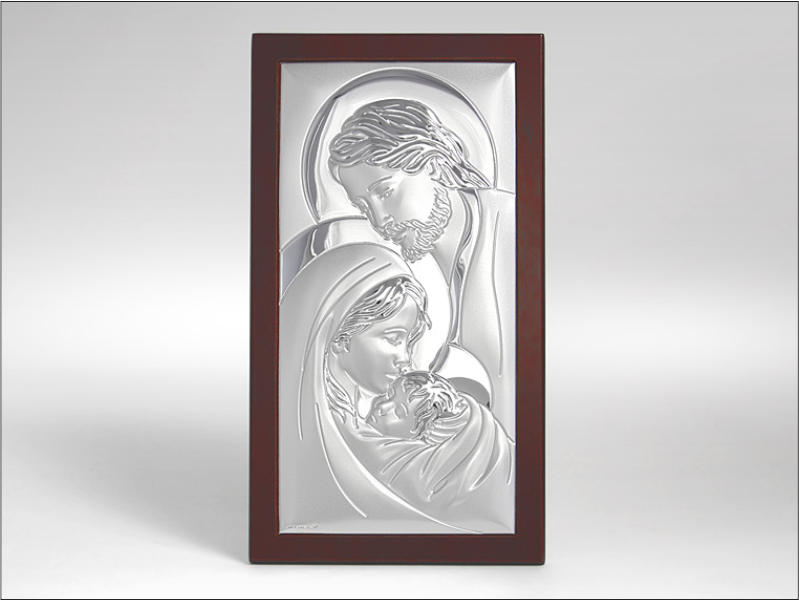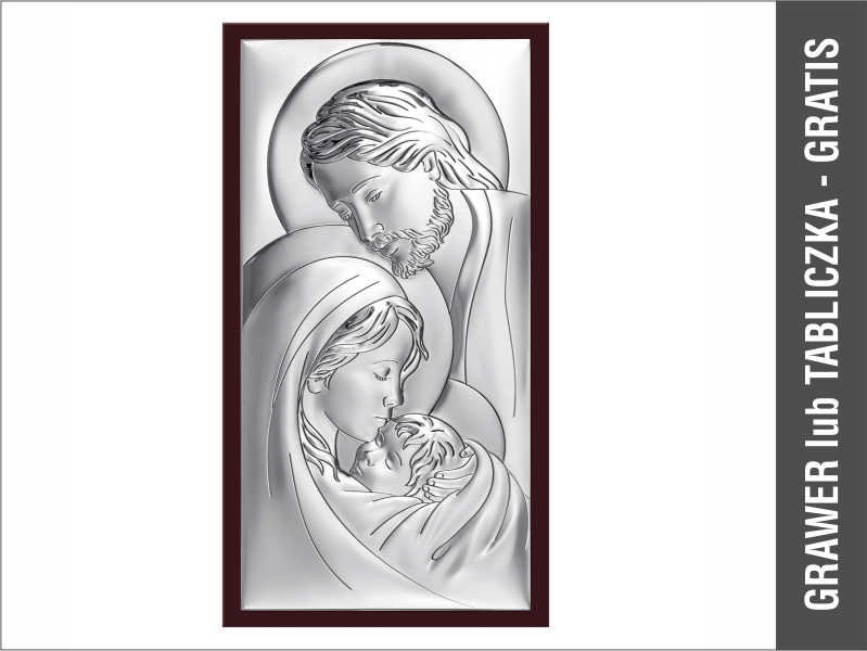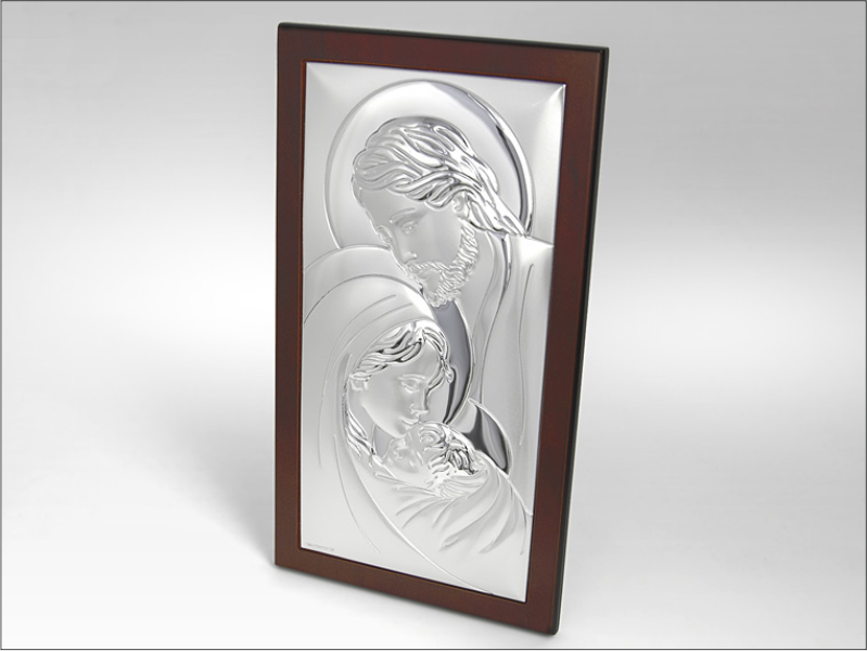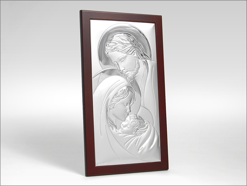 Srebrny Obrazek "Święta Rodzina 6380WM" na drewnianej ramce.