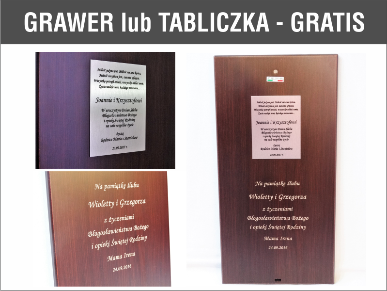 - z możliwością indywidualnego graweru lub tabliczki z grawerem GRATIS