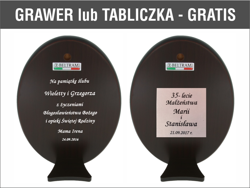 - z możliwością indywidualnego graweru lub tabliczki z grawerem GRATIS