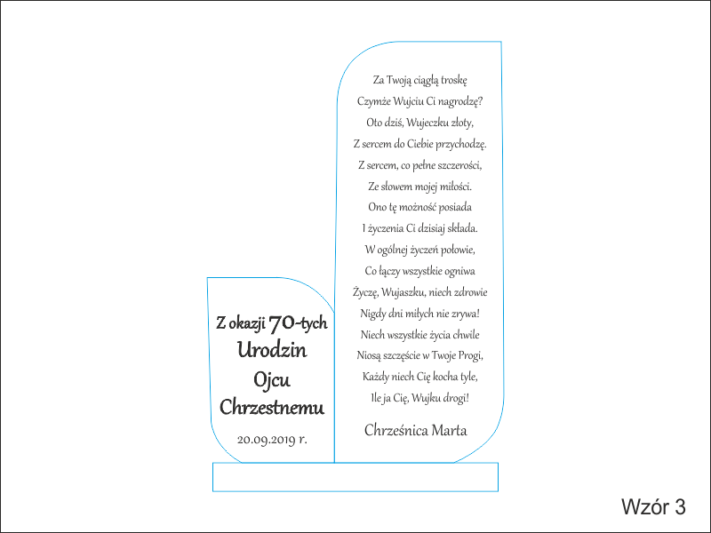 Istnieje możliwość graweru dedykacji wg indywidualnych ustaleń i projektu lub wg jednego ze wzorów.