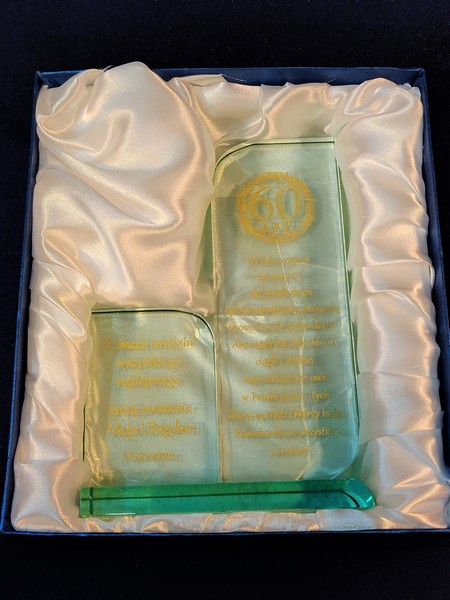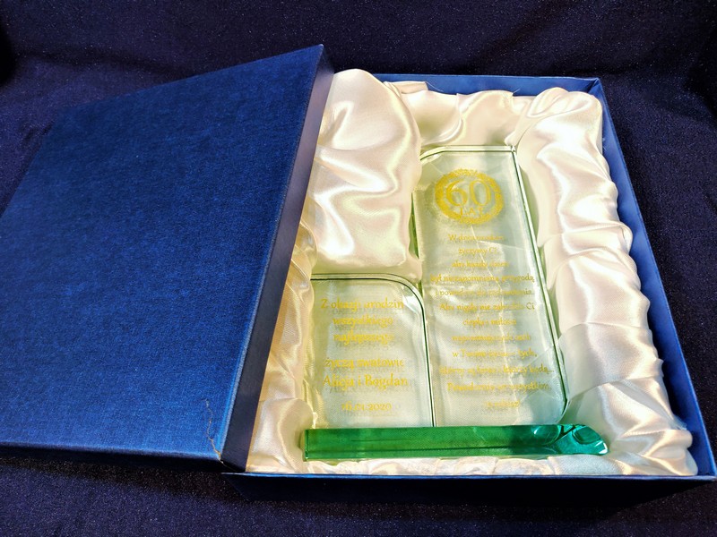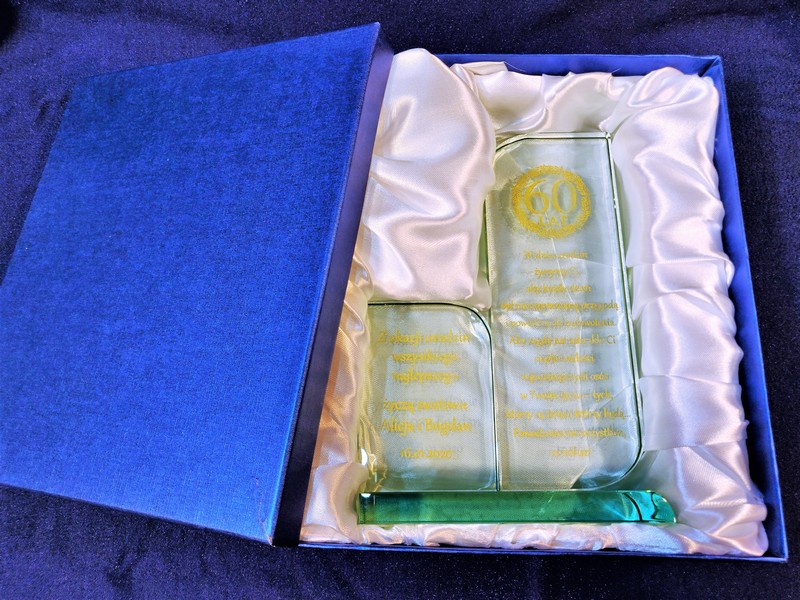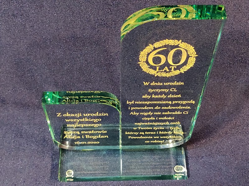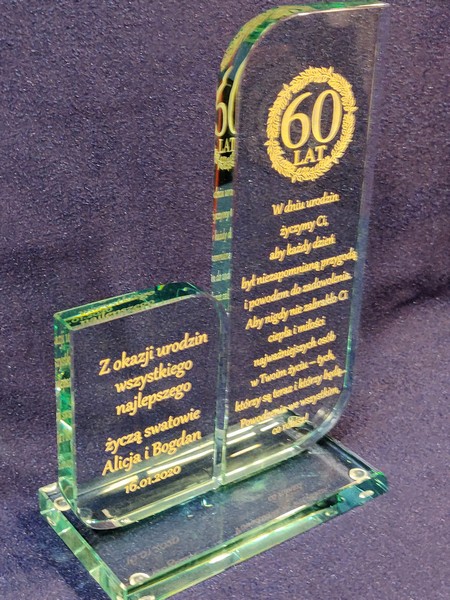 Pamiątkę urodzinową z grawerem można także wykonać na innych modelach statuetek szklanych.