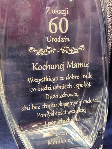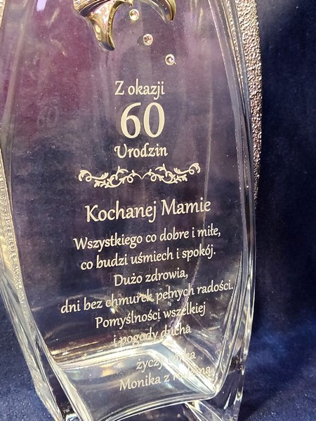 Na wazonie wykonany jest grawer dedykacji dla urodzinowej jubilatki czy urodzinowego jubilata.