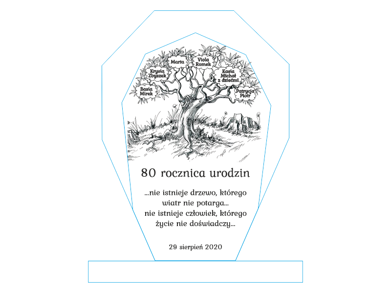 Oprócz dedykacji i ozdobnych grafik istnieje także możliwość wygrawerowania np. zdjęcia Jubilata.