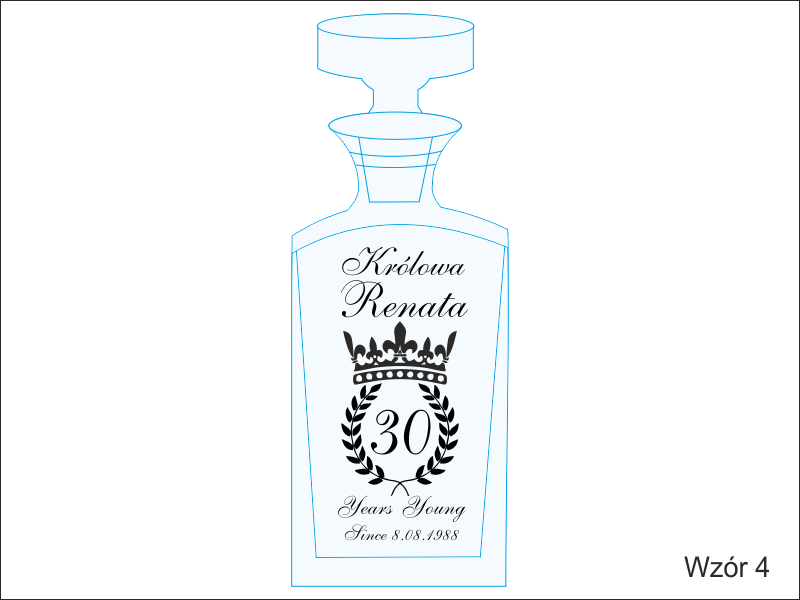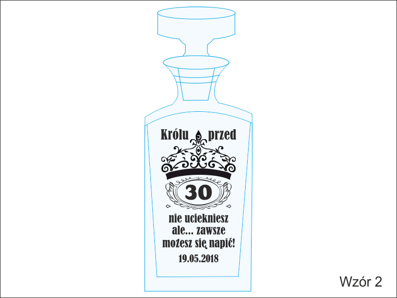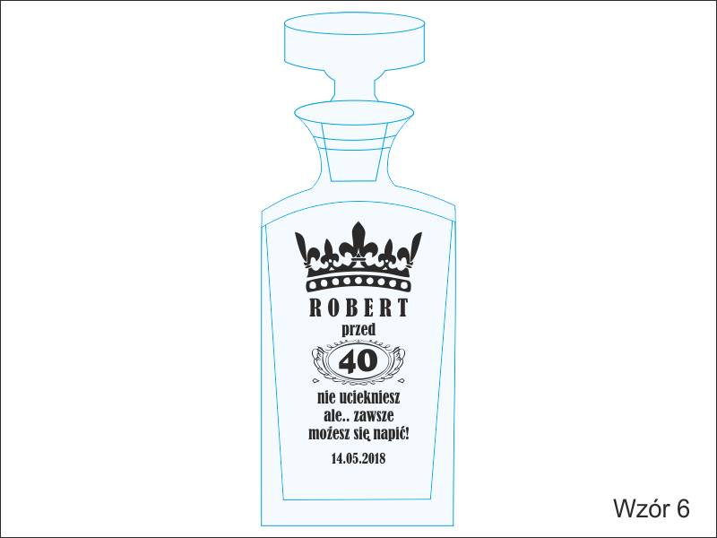 Na karafce wykonany jest grawer ozdobników i dedykacji z okazji Urodzin z motywem Korony.