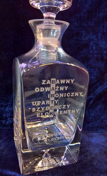 Pamiątkowy grawer na Urodziny można także wykonać na innych modelach karafek.
