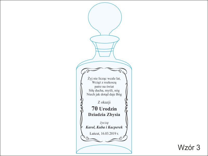Karafkę można wręczyć z okazji różnych uroczystości, nie tylko na urodziny, ale także pamiątkę ślubu, rocznicy ślubu, jubileuszu ...