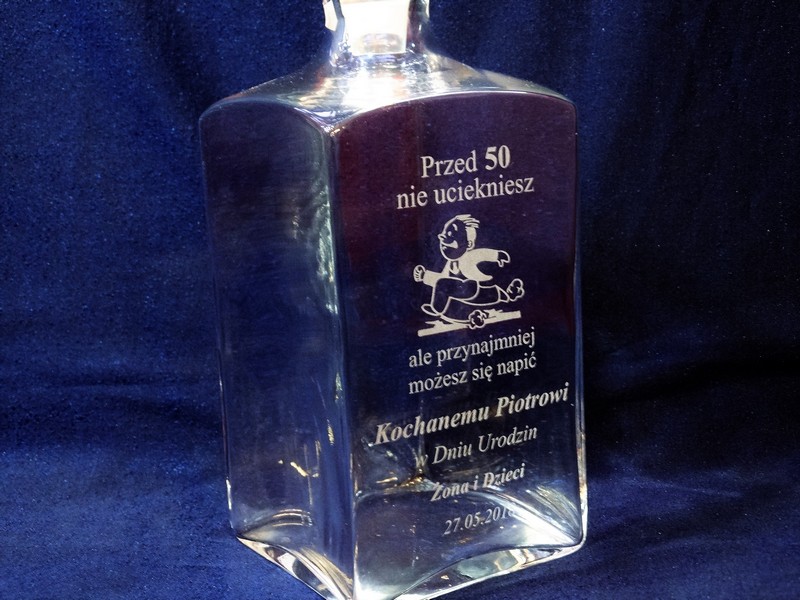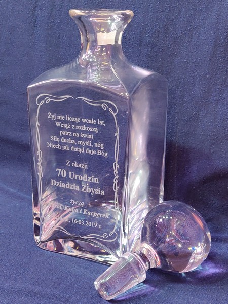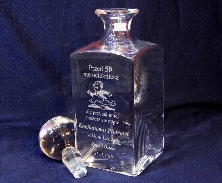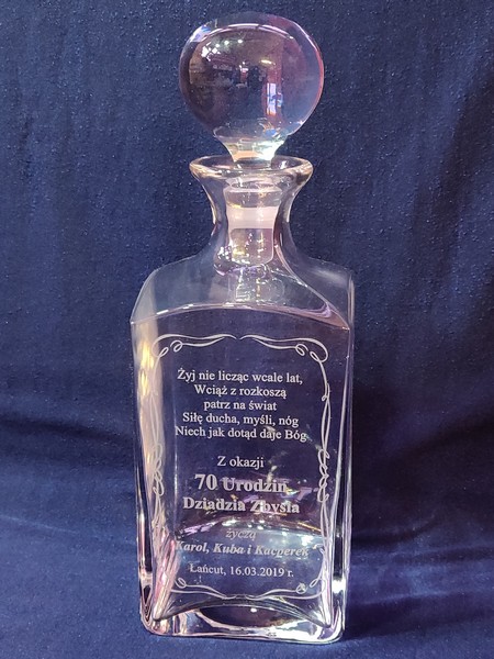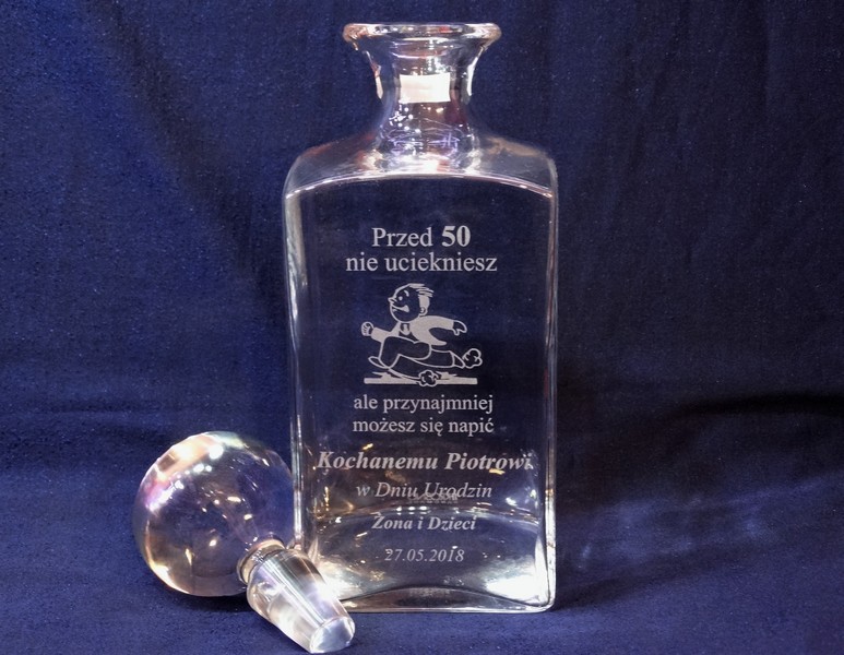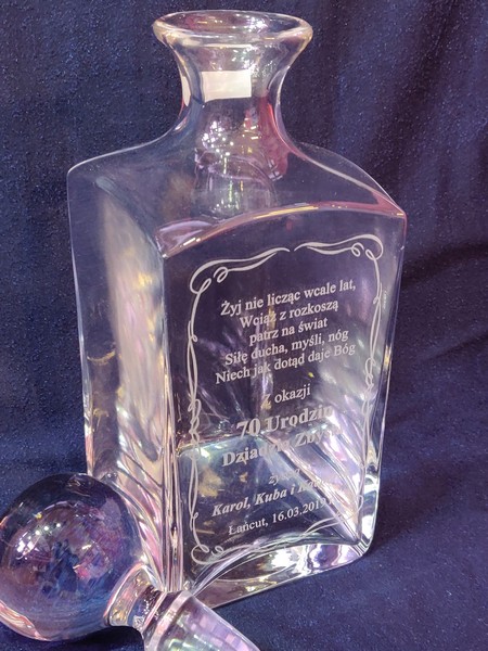 Pamiątkowy grawer na Urodziny można także wykonać na innych modelach karafek.