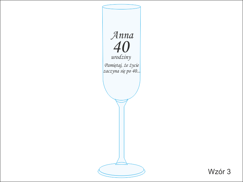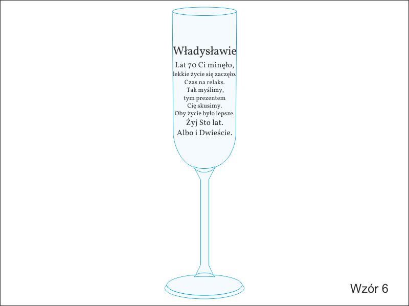 Na kieliszkach istnieje możliwość graweru dedykacji z okazji Urodzin wg indywidualnych ustaleń i projektu lub wg jednego ze wzorów.
