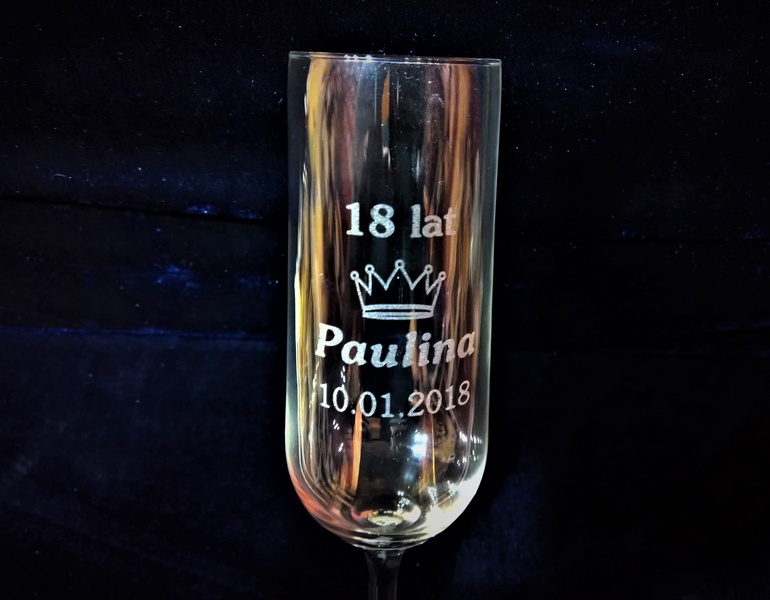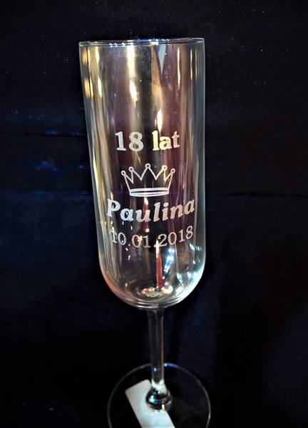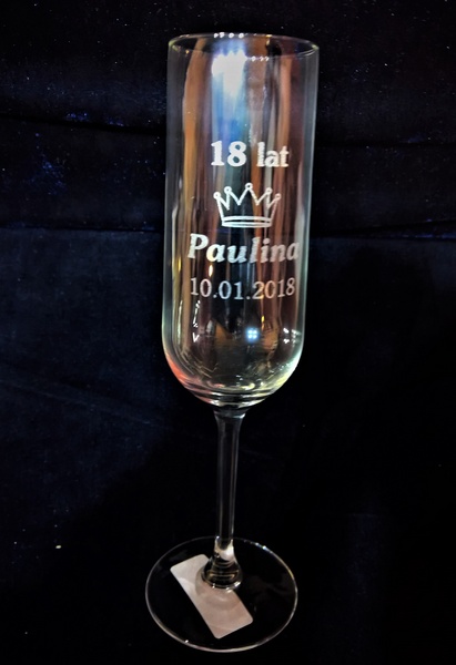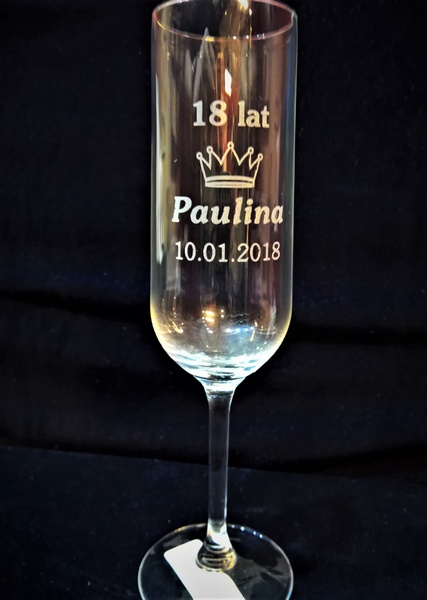 Pamiątkowy upominek na Urodziny w formie kieliszka do szampana z grawerem.
