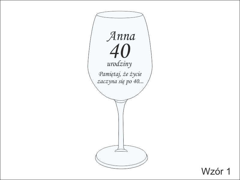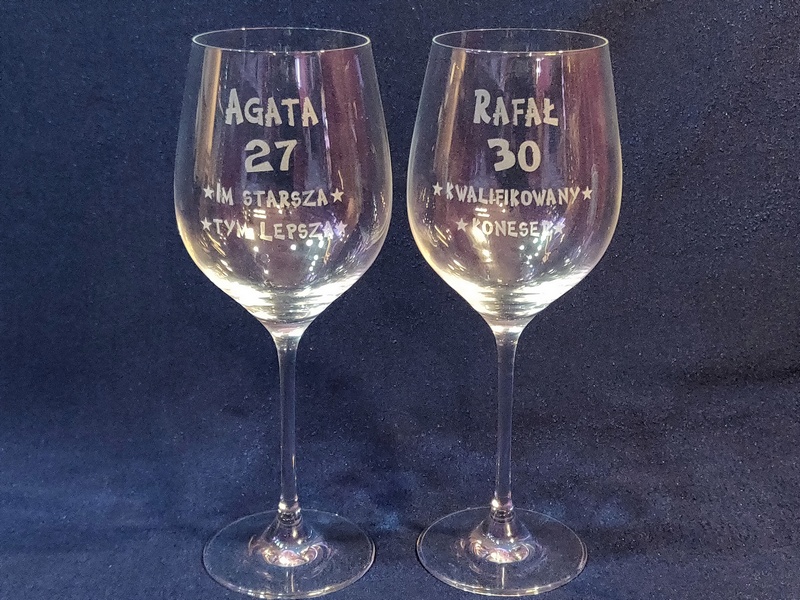 Na kieliszkach istnieje możliwość graweru dedykacji z okazji Urodzin wg indywidualnych ustaleń i projektu lub wg jednego ze wzorów.